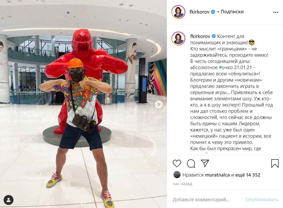 На личной странице в Instagram Киркоров опубликовал философский пост о границах, единстве людей и "дровосеках", которые "раскачивают лодки". Свои размышления певец посвятил тем, "кто не мыслит границами".