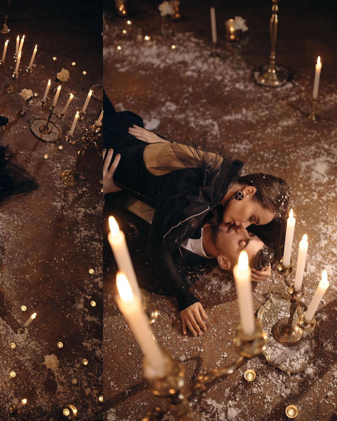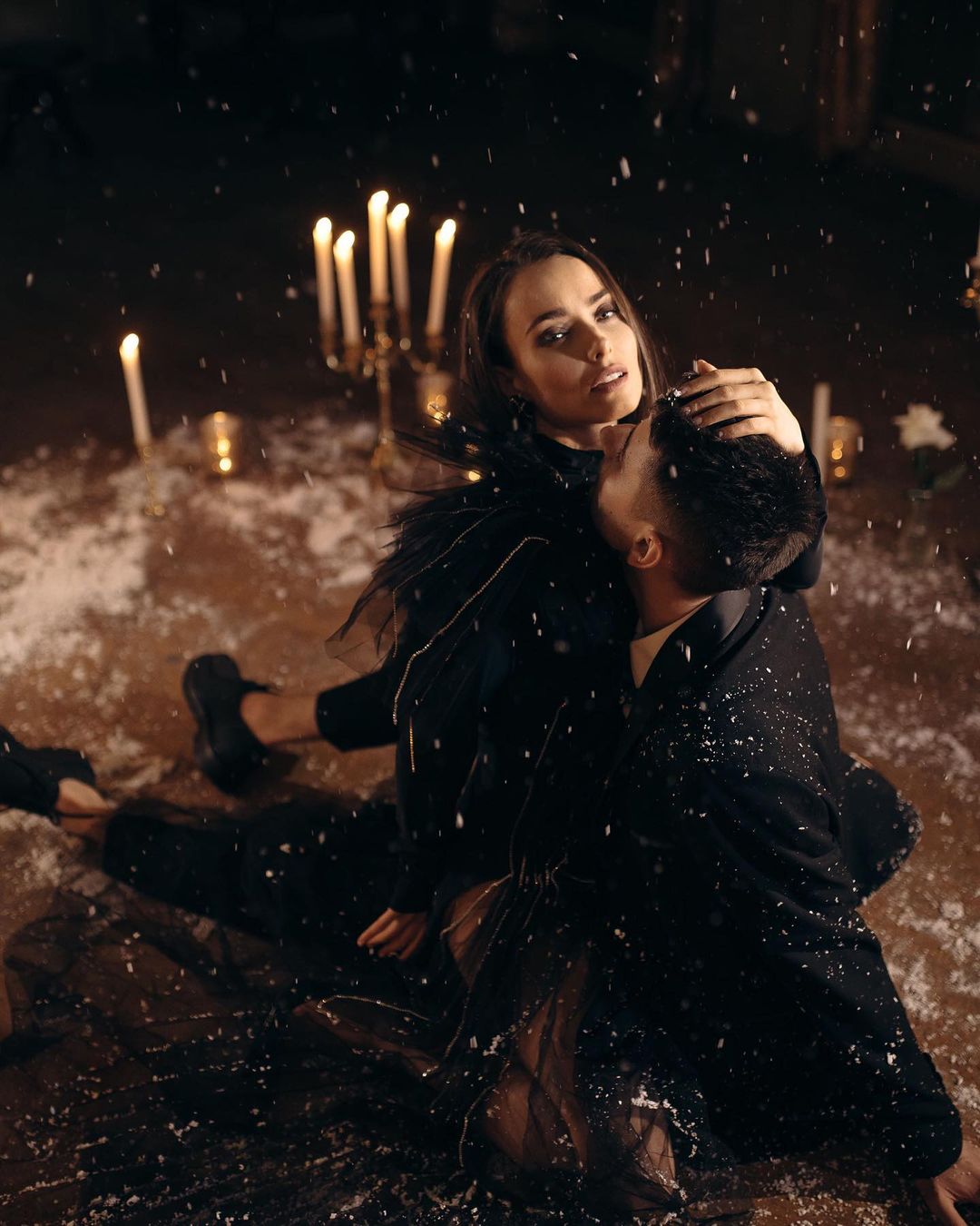 На днях пара приняла участие в совместной фотосессии, пронизанной любовью, страстью и огнем. Ксения и Александр позировали в полумраке среди зажженных свечей и искусственного снега. Автором эффектных снимков выступил фотограф из Черновцов Костя Георгиян, который и показал результат съемки в своем Instagram.