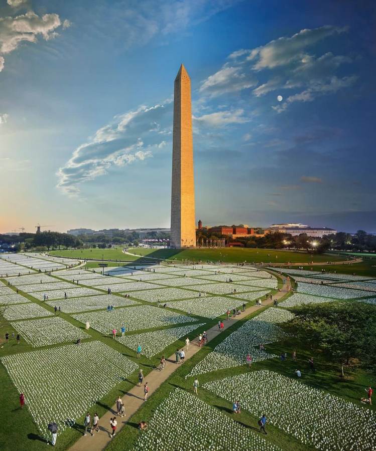 Американский фотограф Стивен Уилкс, известный техникой "Изо дня в ночь", создал уникальный кадр в память о жертвах коронавируса, число которых в США достигло уже 670 тысяч.