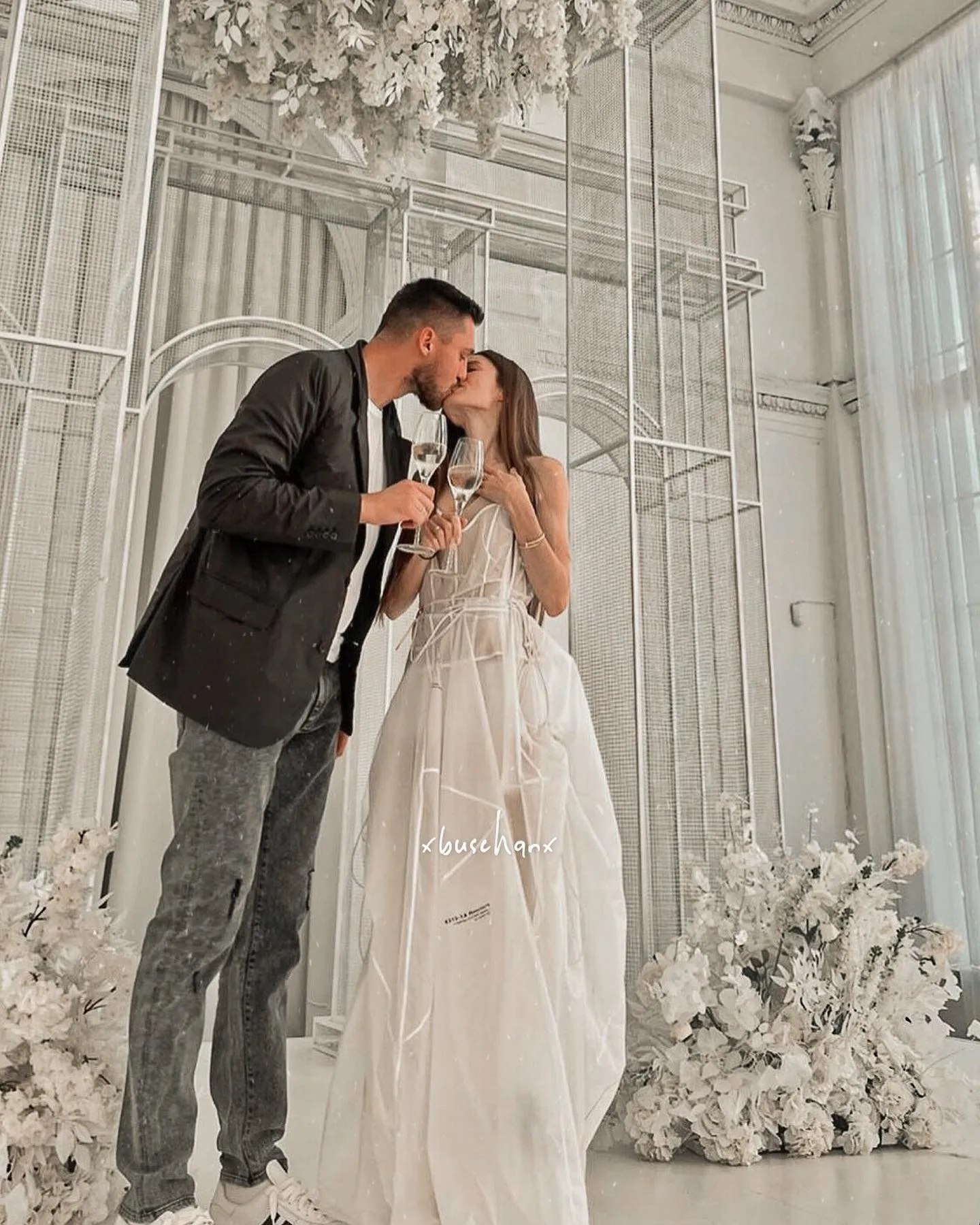 Вратарь Георгий Бущан, который получил травму в знаковом матче Уэльс - Украина, женился на своей девушке Виктории. Пара не афишировала личную жизнь и устроила приватную церемонию, но их фотографии все же попали в Instagram.