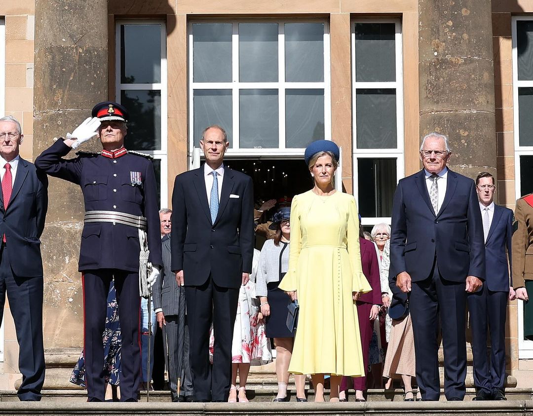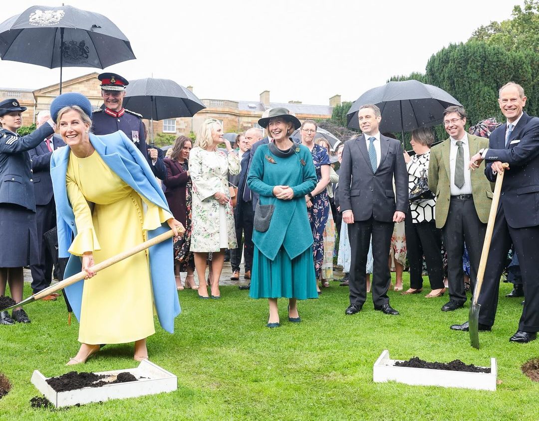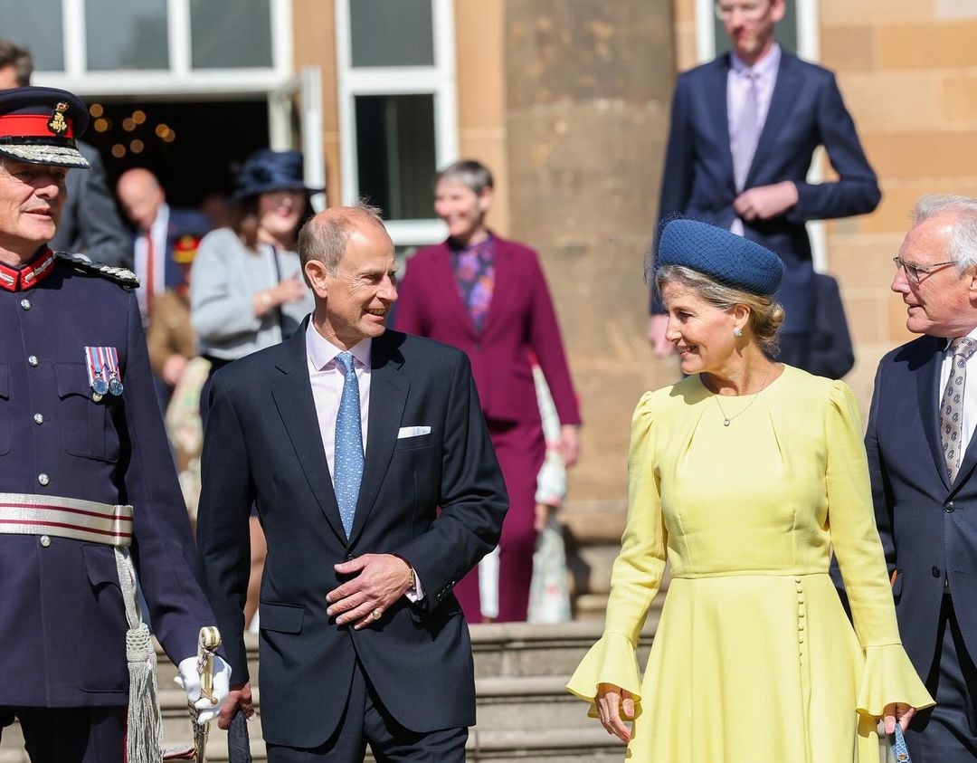 Накануне герцог и герцогиня Эдинбургские посетили ежегодную садовую вечеринку королевской семьи в замке Хиллсборо в Северной Ирландии. Жена принца Эдварда, младшего сына Елизаветы II, Софи, которая недавно была с визитом в Украине, появилась на мероприятии в желто-голубом наряде.