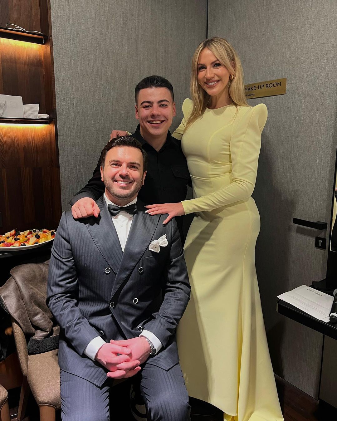 Соответствующая публикация появилась на странице ведущего в Instagram. На фото все трое позировали с улыбками в праздничных нарядах.