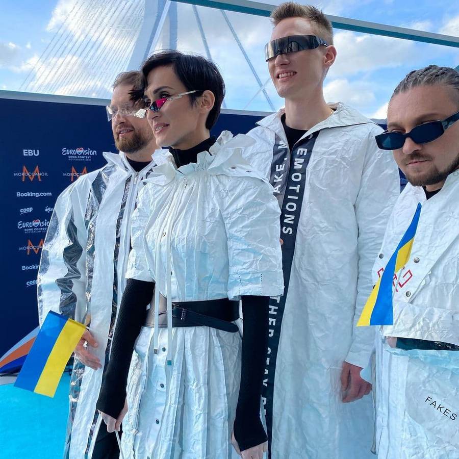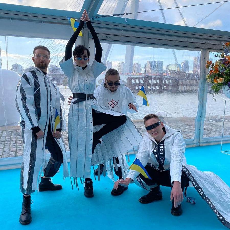 Прошлись по дорожке и представители Украины, группа Go_A. На открытие конкурса музыканты пришли в белых нарядах из перерабатываемого пластика. Фото в Instagram публикует "Суспільне".