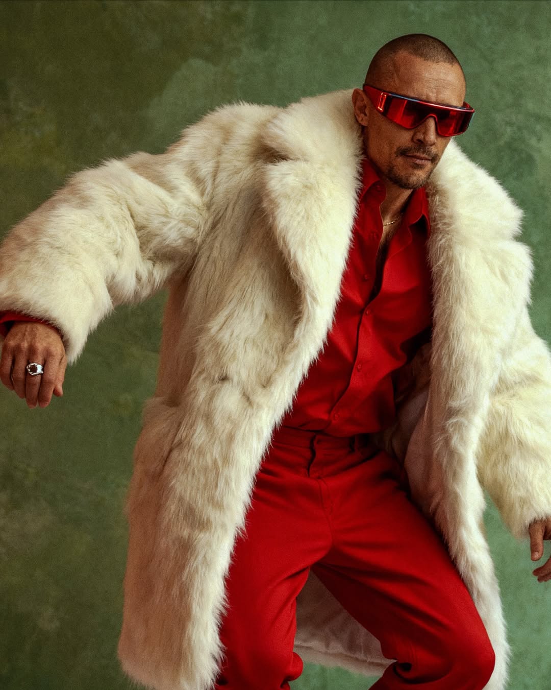 В черном плаще и на каблуках Тарас хватается за сердце. В стильном пиджаке с шарфом в горошек актер разлегся на диване, а в шубе белого цвета и красном костюме "мачо" на миг замер, заинтриговав своих фанаток. На одной из фотографий Тарас смотрит в потреканное зеркало, очевидно, с мыслями увидеть там себя настоящего, а еще на одном фото Цымбалюк сидит в автомобиле с очень симпатичной девушкой.