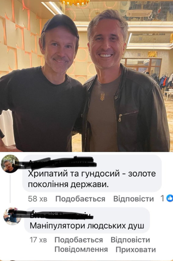 В сети он опубликовал свое фото вместе с украинским певцом Святославом Вакарчуком, а также добавил скриншоты нескольких комментариев.