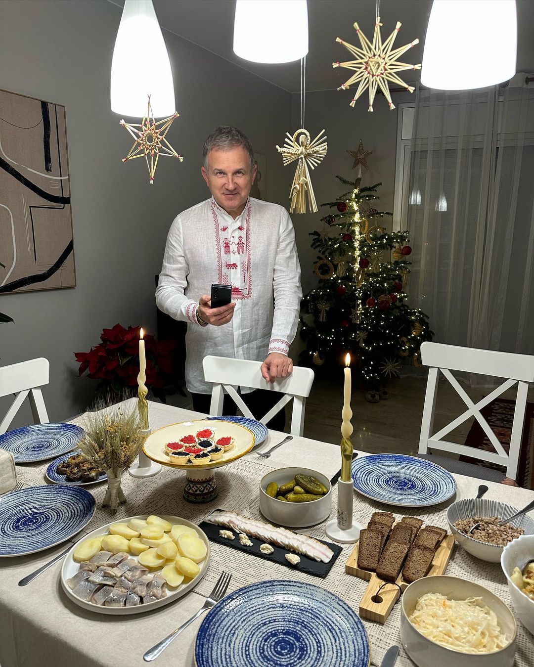 Юрий Горбунов также показал праздничный стол с 12 постными блюдами и дидухом. "Христос Родился!! Вкусной всем кутьи!! Пусть Божье Благословение принесет нашей стране Победу и спокойные, тихие семейные вечера! С Рождеством!" - написал он.