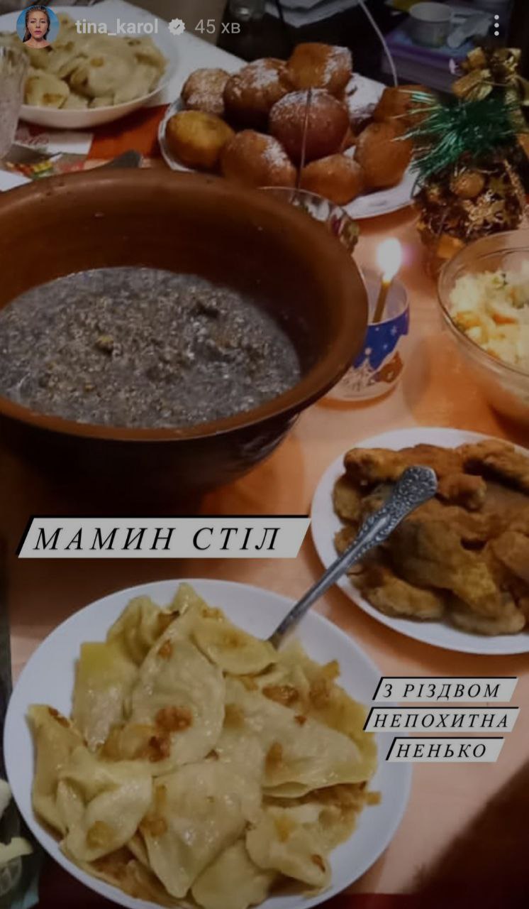 Также своими поздравлениями с Рождеством поделилась Тина Кароль, которая праздник встретила с мамой. Певица показала традиционные постные блюда - кутью, вареники, рыбу. "Мамин стол. С Рождеством, непоколебимая ненька", - написала она.