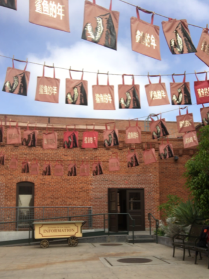 Лью утверждает, что подготовил для внутреннего двора музея инсталляцию под названием "Год красного пакета", посвященную китайским мигрантам. 80 пустых красных холщовых сумок, расписанных сусальным золотом и черной краской, висели на бечевке и постепенно выцветали на солнце. Но 7 декабря, за несколько дней до закрытия выставки, городская ремонтная бригада сняла сумки и выбросила их. Согласно иску, сотрудники музея не проконтролировали вывоз сумок, а ремонтники по незнанию приняли их за мусор.