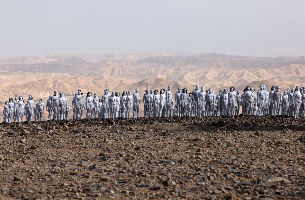 200 обнаженных мужчин и женщин на берегу Мертвого Моря стали участниками нового проекта Спенсера Туника - знаменитого американского художника, который прославился массовыми фотографиями голых людей.