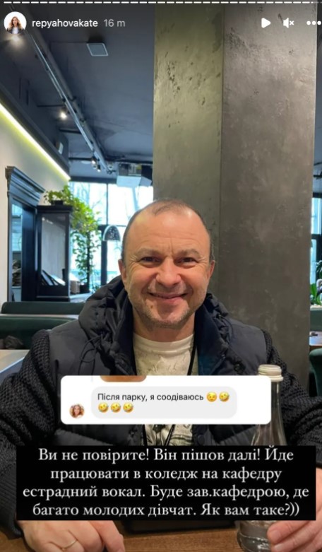 "Идет работать в колледж на кафедру эстрадный вокал. Будет заведующим кафедрой, где много молодых девушек. Как вам такое?" – с сарказмом поинтересовалась Екатерина.