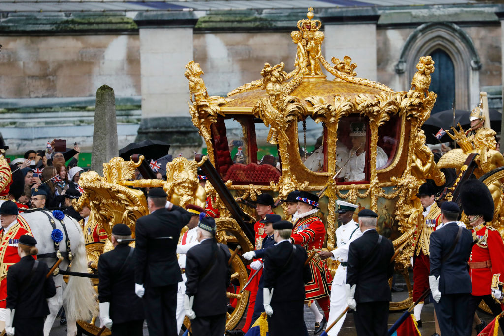 После коронации Чарльз III и Камилла покинули Вестминстерское аббатство. Под перезвон колоколов король и королева сели в золотую карету и отправились в Букингемский дворец. За королевским шествием наблюдали тысячи человек.