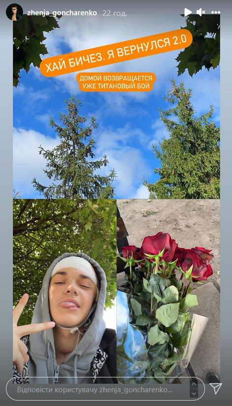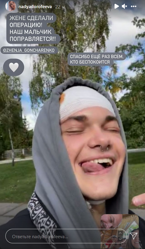Процедура прошла успешно, и Женя уже вернулся домой. Он опубликовал в "сториз" фотографию с перебинтованной головой и написал, что теперь он "титановый бой".