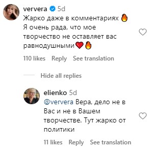 "Жарко даже в комментариях. Я очень рада, что мое творчество не оставляет вас равнодушными".