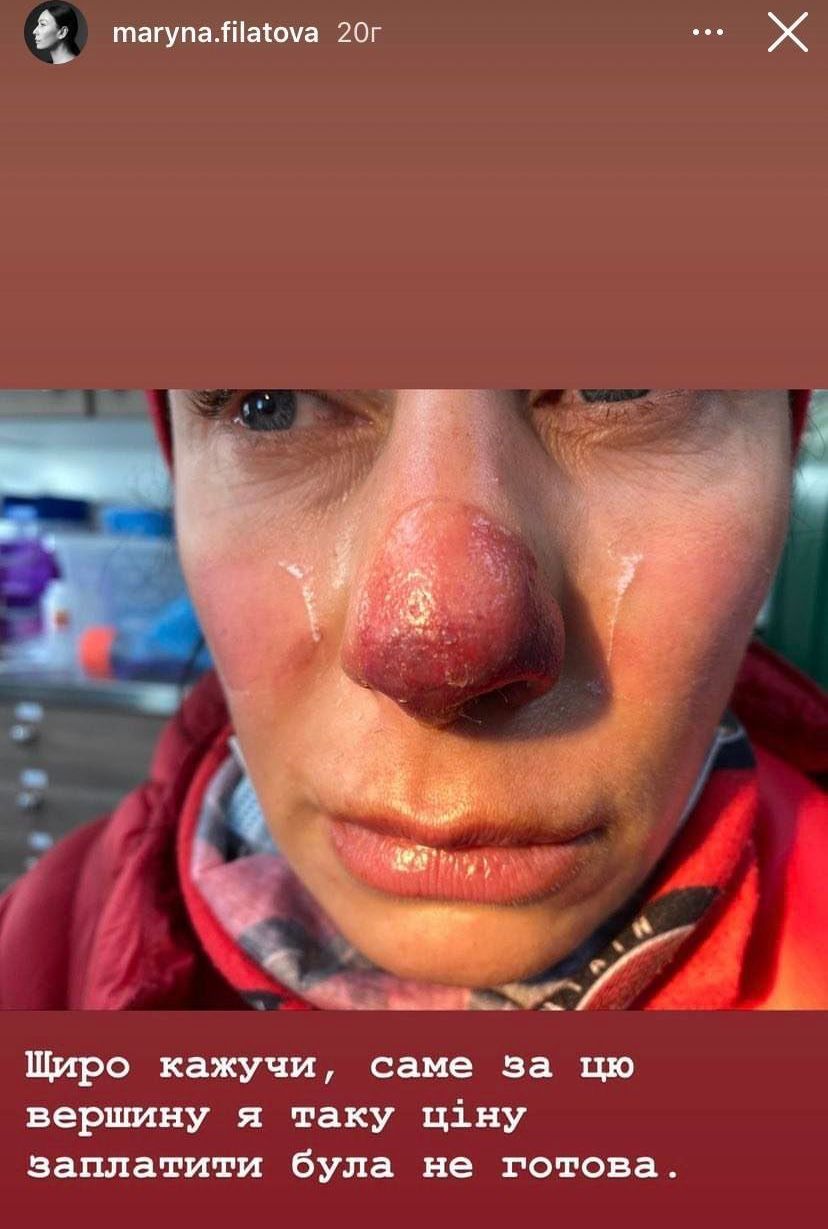 Жена мэра Днепра Бориса Филатова Марина удивила своих подписчиков историей, которая случилась с ней в январе прошлого года. Женщина рассказала о покорении самых высоких гор Антарктиды, после которого ей едва не ампутировали нос.