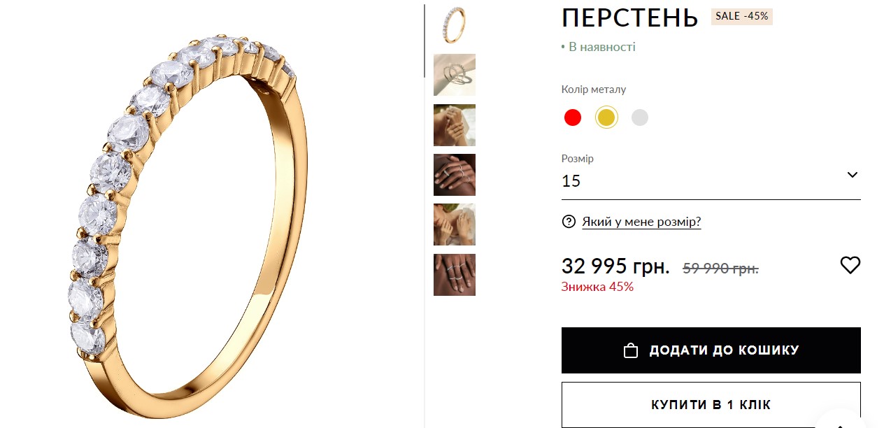 Изделие бренда SovaJewels входит в коллекцию The Diamond lines, и сейчас цена на сайте марки составляет 33 тысячи (с учетом скидки). Обычная стоимость украшения – 59 990 грн.