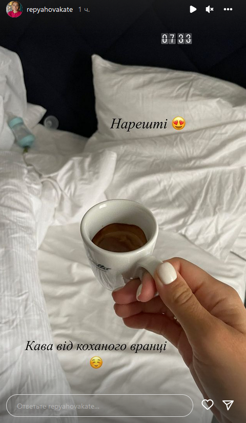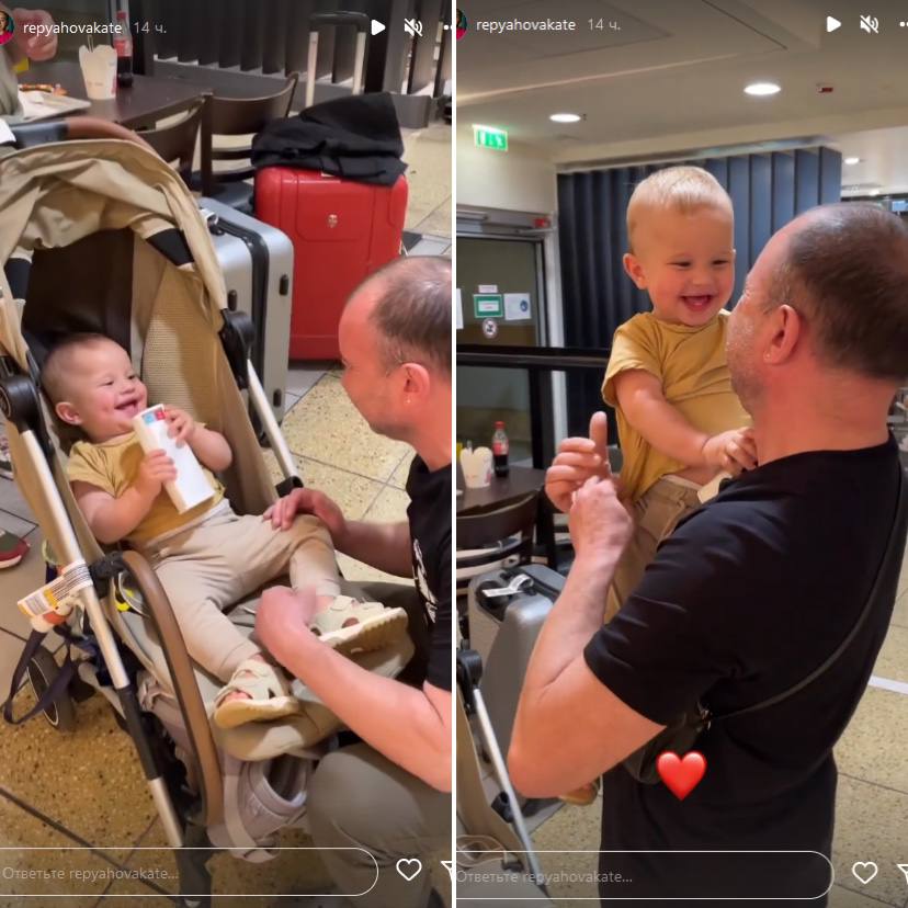 Репяхова также показала радостного Мишу, который расплылся в улыбке при виде папы, а также рассказала, как прошел перелет.