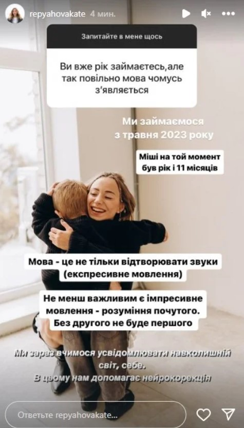 Екатерина Репяхова воспитывает сына Михаила, которому в июне этого года исполнится три года. Ранее блогерша и жена Виктора Павлика рассказывала, что у их ребенка есть задержка речи, и сейчас она поделилась подробностями лечения.