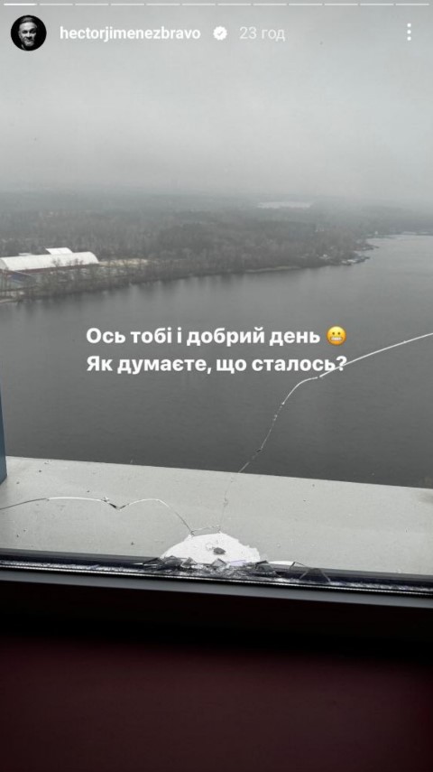 Ночью 25 ноября Киев подвергся массированной атаке иранских дронов-камикадзе Shahed. Тогда над Киевской и другими областями было сбито более 70 вражеских БПЛА, и обломок одного из вражеских дронов, сбитых над столицей, попал в окно квартиры Эктора Хименеса-Браво.