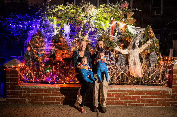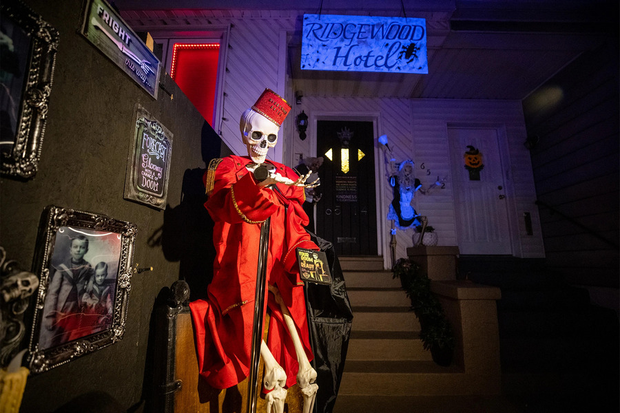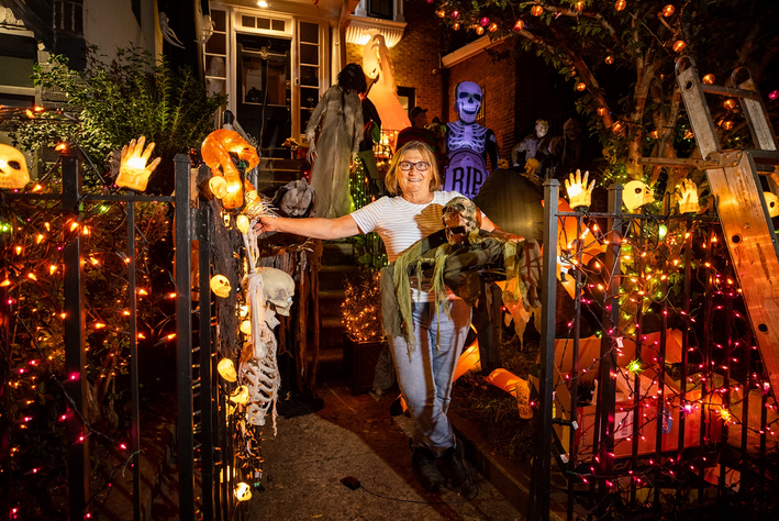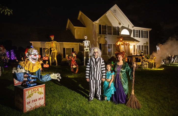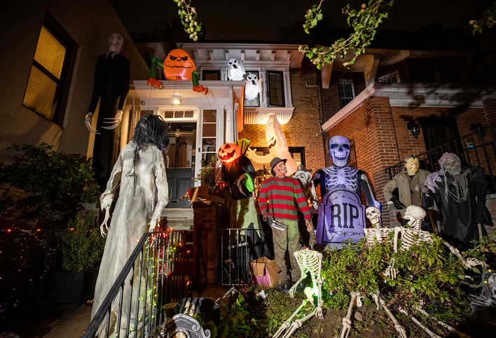 Вики Пумпуридис из американского штата Куинс каждый год устанавливает возле своего дома персонажей фильмов ужасов, Майкла Майерса, Фредди Крюгера и Джейсона Вурхиза, которые освещают жутких призраков, расположившихся на верхнем этаже. В 2021 году женщина улучшила освещение и добавила больше привидений.