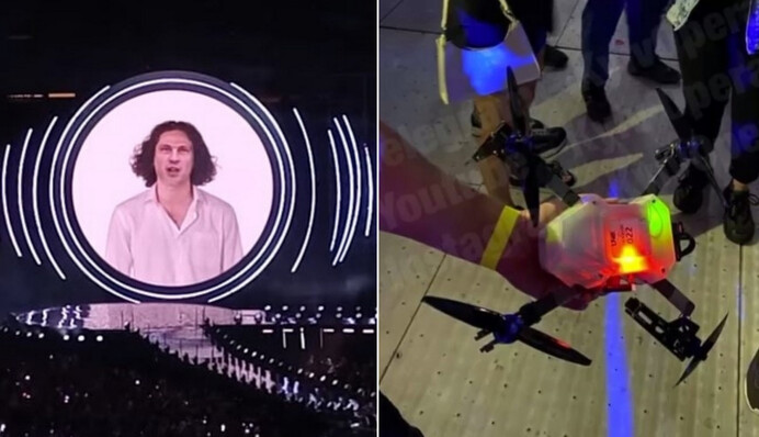 Поклонники встретили номер громкими овациями, некоторые сетовали на "неживую мимику" голограммы, а вот любители мистики усмотрели на стадионе нечистое. Так совпало, что именно во время выступления группы "Скрябин" на зрителей упали сразу несколько дронов, которые снимали концерт. Причины их резких вертикальных падений неизвестны. Любопытное видео публикует Telegram-канал "Киев Оперативный".