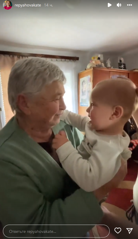 Мама народного артиста живет в Теребовле, Тернопольской области. Супруга певца сняла на видео теплую встречу бабушки с внуком и показала подписчикам в "сториз". На первом кадре 81-летняя Александра берет на руки 11-месячного Мишу и прижимает его к себе. Малыш в это время улыбается. Бабушка заметила, что с момента их первой встречи, мальчик очень подрос. "Какой ты тяжелый", - говорит она.