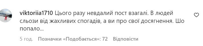 "На этот раз неудачный пост вообще. У людей слезы от ужасных воспоминаний, а вы о своих достижениях. Что попало...";