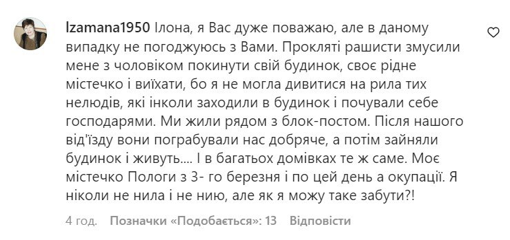"Вы просто представьте, ваш дом разбомбили, ваш муж погиб на войне, вы вдова, без дома, ребенок сирота, и тут какая-то панночка пишет, что что бы там ни было, но это был лучший год, это просто....абсурд".