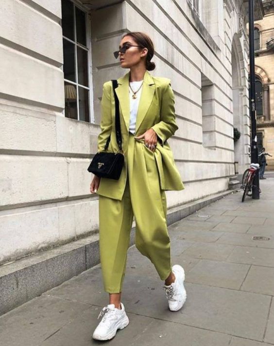 В этом сезоне особую популярность имеет оверсайз – даже в коллекциях именитых дизайнеров вы найдете удлиненные блейзеры, жакеты, пиджаки. В сочетании с брюками или джинсами слоучи и массивными кроссовками вы будете самой модной в офисе.