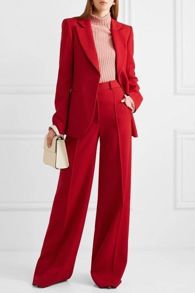 А если вы устали от традиционной черно-белой офисной гаммы, добавьте в свою жизнь красок. Костюм яркого цвета с широкими расклешенными брюками точно выделит вас среди толпы.