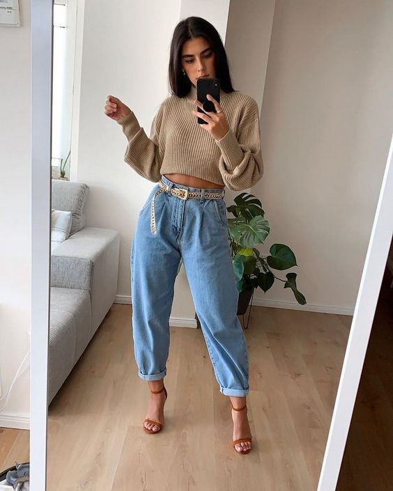 Ультрамодные в этом сезоне джинсы слоучи, которые имеют зауженные к низу штанины, можно небрежно подвернуть один или несколько раз, тем самым оголив часть щиколотки. Отметим, что для такого образа следует подобрать подходящую обувь.