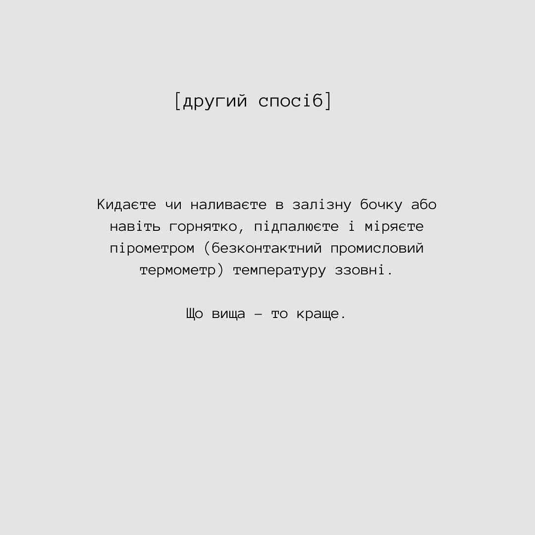Второй способ: бросаете или наливаете в железную бочку или даже чашку, поджигаете и меряете пирометром (бесконтактный промышленный термометр) температуру снаружи. Чем выше – тем лучше.