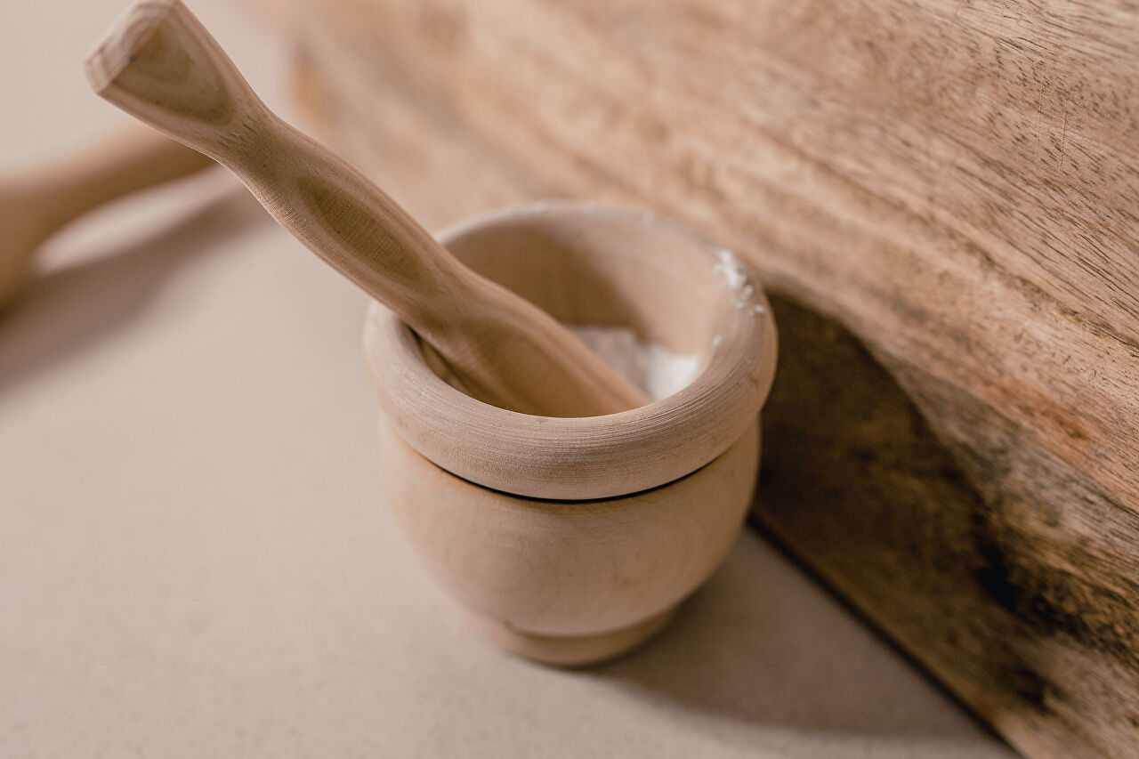 В арсенале наших бабушек и прабабушек не было мощных блендеров, поэтому они измельчали сахарную пудру и специи с помощью ступки и пестика. В мраморную, деревянную или фарфоровую ступку высыпаем немного сахара – важно, чтобы она была заполнена не больше, чем на одну треть всего объема. Берем пестик и тщательно растираем сахар до тех пор, пока он не начнет пылить и налипать на стенки ступки.