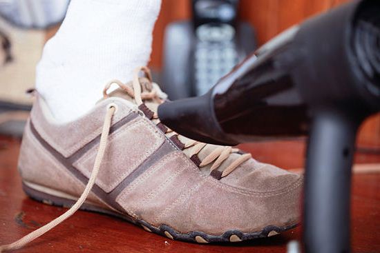 Плотно набиваем туфли или кроссовки мокрыми газетами и ждем несколько часов, а лучше оставить их в таком виде на всю ночь. Возможно, процедуру придется повторить несколько раз.