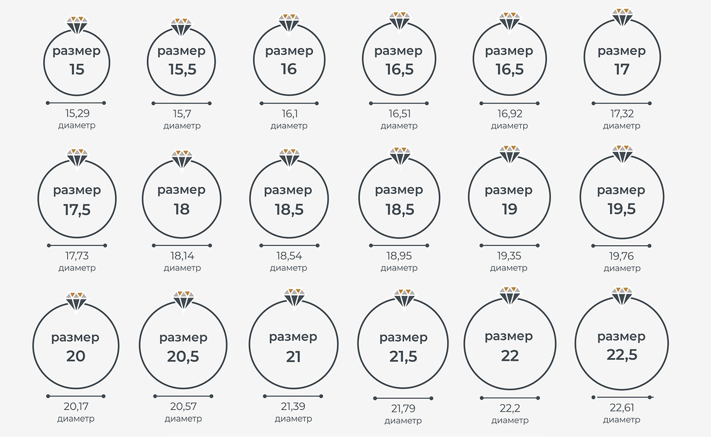 Еще один вариант – распечатать схему с окружностями, которую легко можно найти в интернете, и методом подбора узнать размер. На это тоже нужно определенное время, поэтому если ваша девушка не расстается с украшением, сделать это будет достаточно сложно.