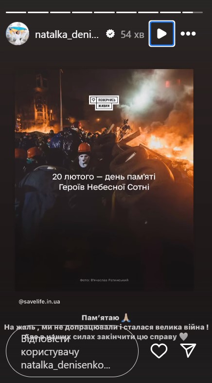 "Сегодня в Украине день Героев Небесной сотни, а также 10-я годовщина с начала российского вооруженного вторжения. Помним мужество, и должны быть благодарны каждому и каждой, кто изменил и меняет ход нашей истории", - написала исполнительница в Instagram-stories.