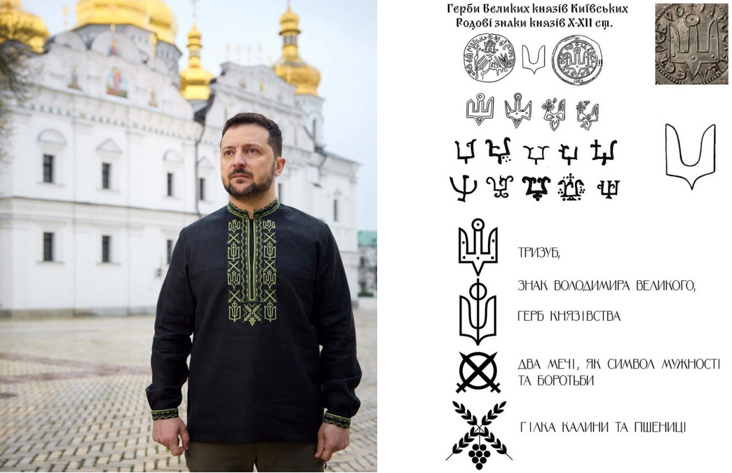 В видеопоздравлении на Пасху в том же году Владимир Зеленский предстал перед украинцами в вышиванке Etnodim с символами Киевской Руси.