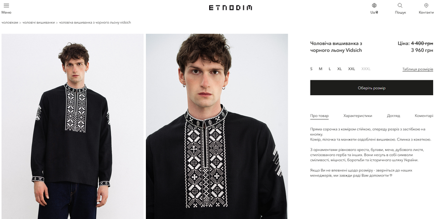 Вышиванку Владимира Зеленского создал украинский бренд Etnodim, который специализируется на изготовлении современной вышитой одежды. На сайте бренда указано, что сейчас ее цена со скидкой - 3 960 грн.