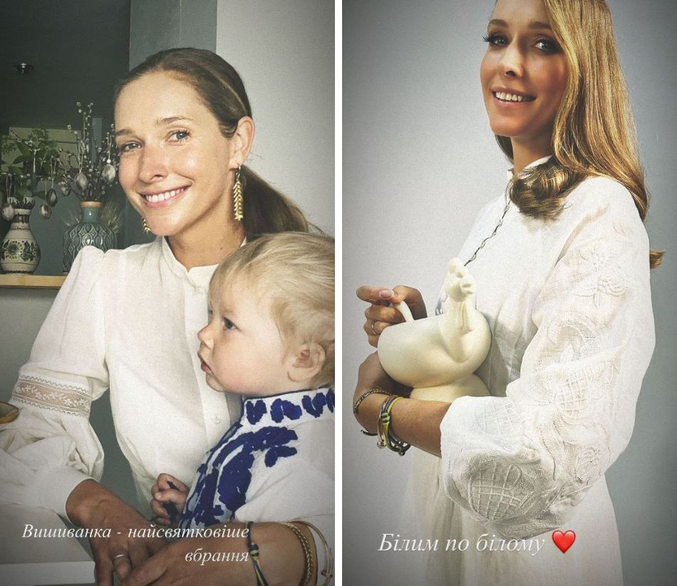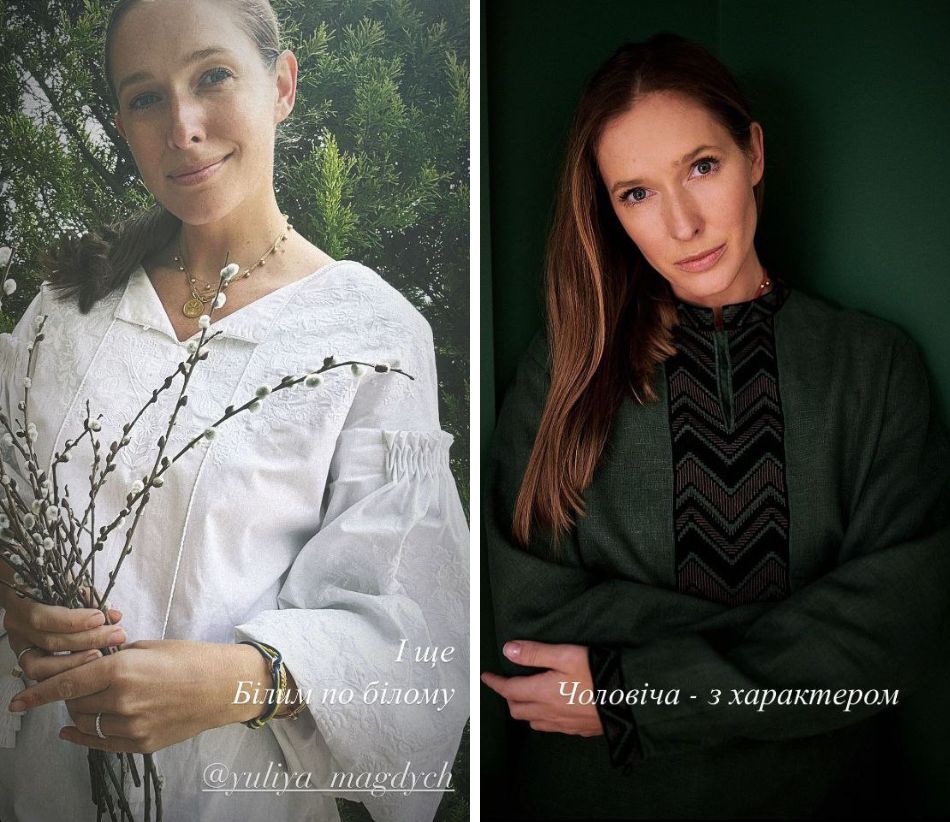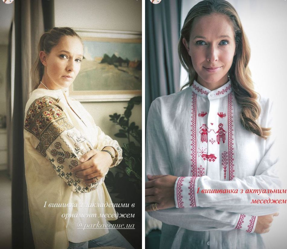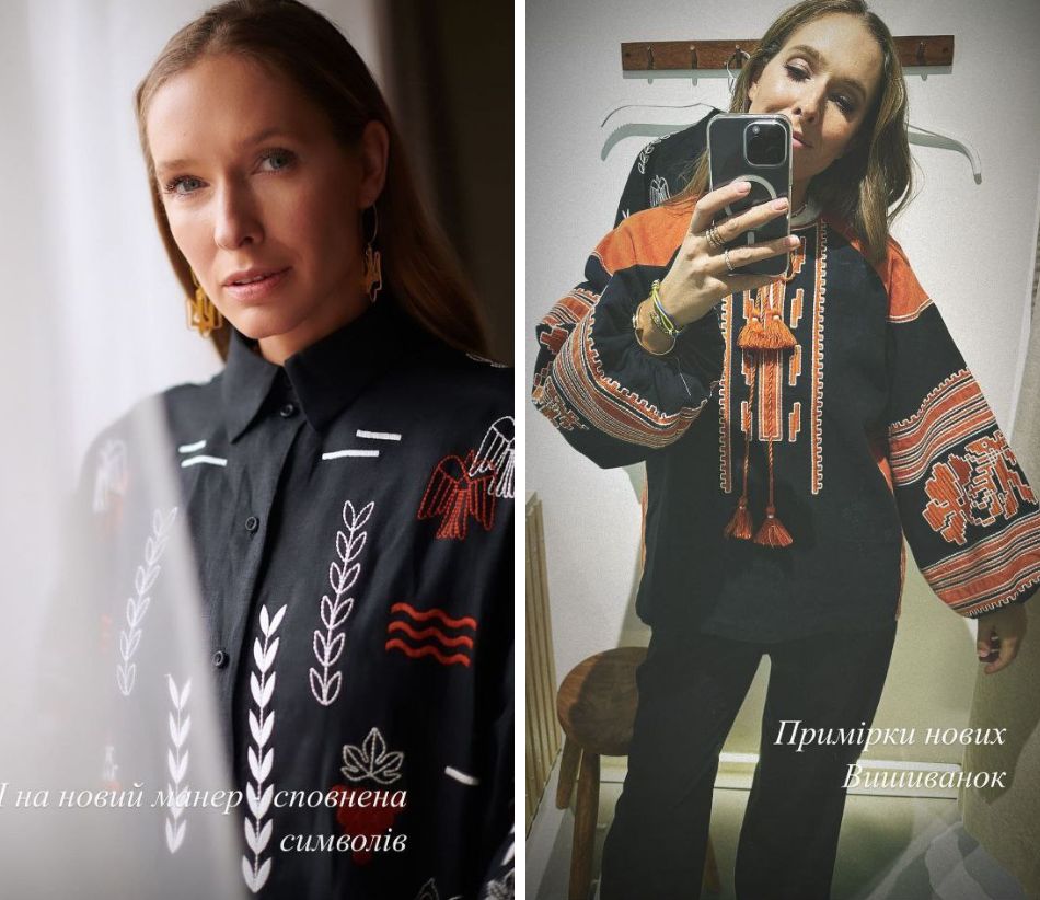 Также в Instagram-сторис телеведущая показала свою коллекцию дизайнерских рубашек и платьев. Среди них много белой вышивки на белом полотне, темно-зеленая вышиванка "с мужским характером", современные рубашки с вышивкой виде птиц, цветов и листьев.