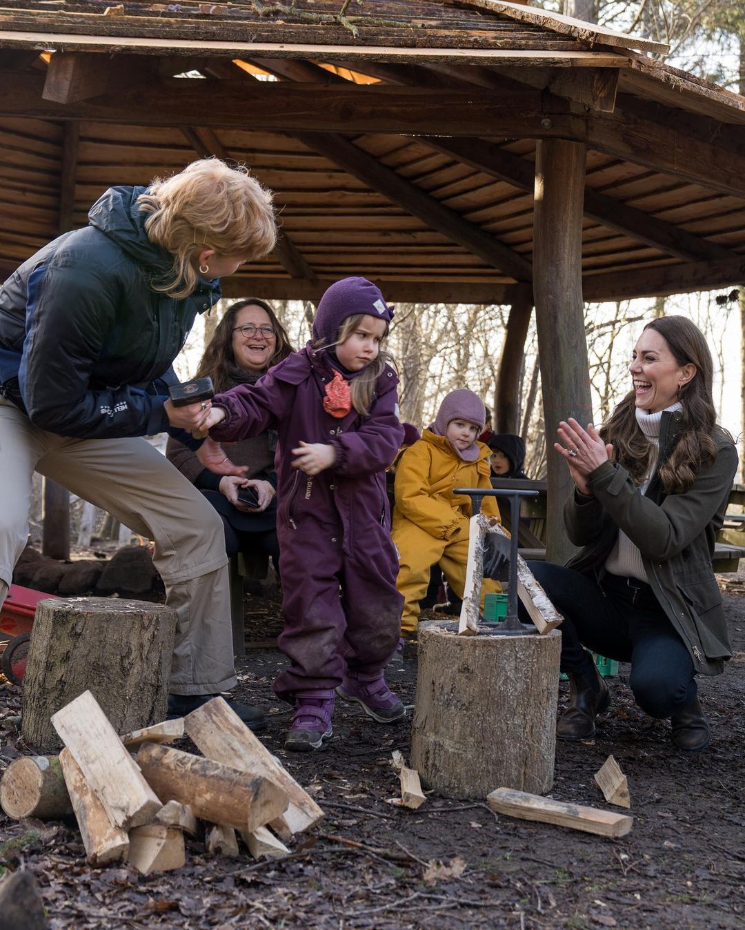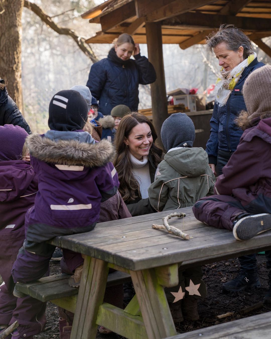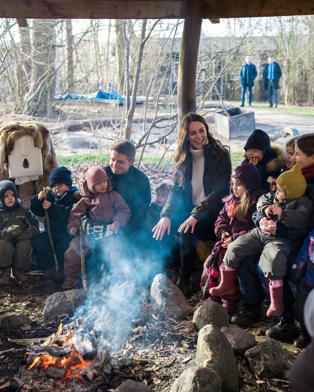 Герцогиня Кембриджская посетила уроки, которые проводятся на свежем воздухе, и познакомилась с концепцией дошкольного образования, в основе которой лежит нацеленность на социальное и эмоциональное развитие ребенка, а не только на умственное.