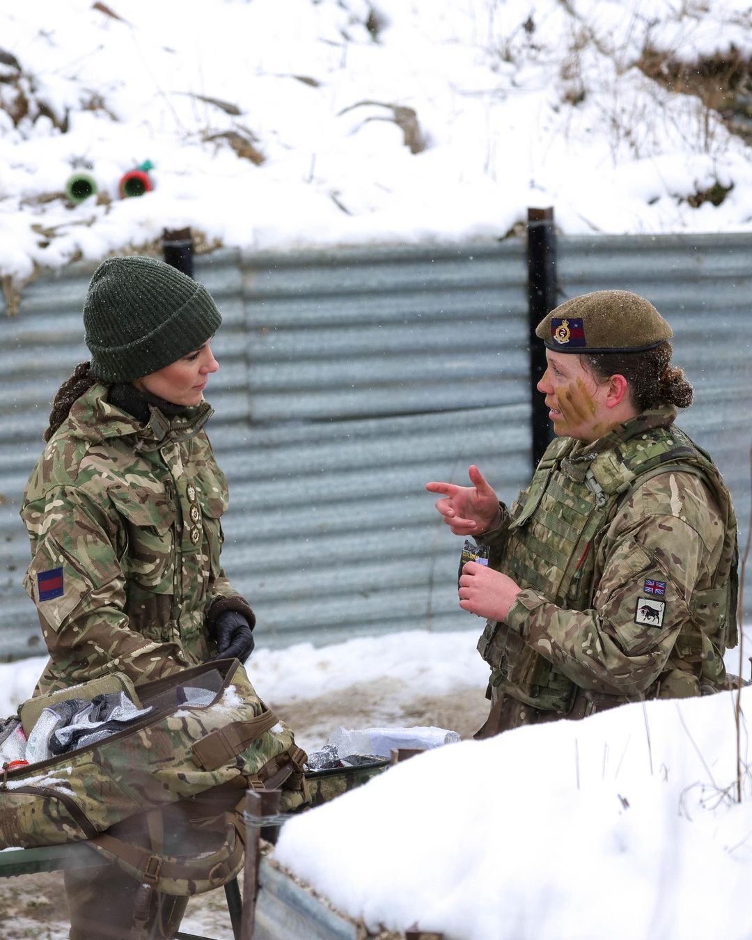 Принцесса Уэльская Кейт Миддлтон 8 марта присоединилась к членам 1-го батальона ирландской гвардии для боевого учения на тренировочном полигоне, расположенного на равнине Солсбери. Жена британского принца Уильяма научилась накладывать турникет и прошла инструктаж по разминированию.