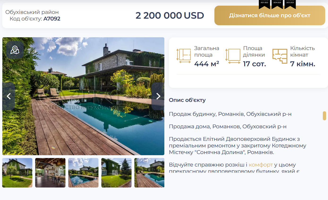 "444 кв.м, 17 соток, семь спален – за 2 200 000 долларов. Вот такая стоимость семейного гнездышка Потапа и Насти", - заявил блогер.