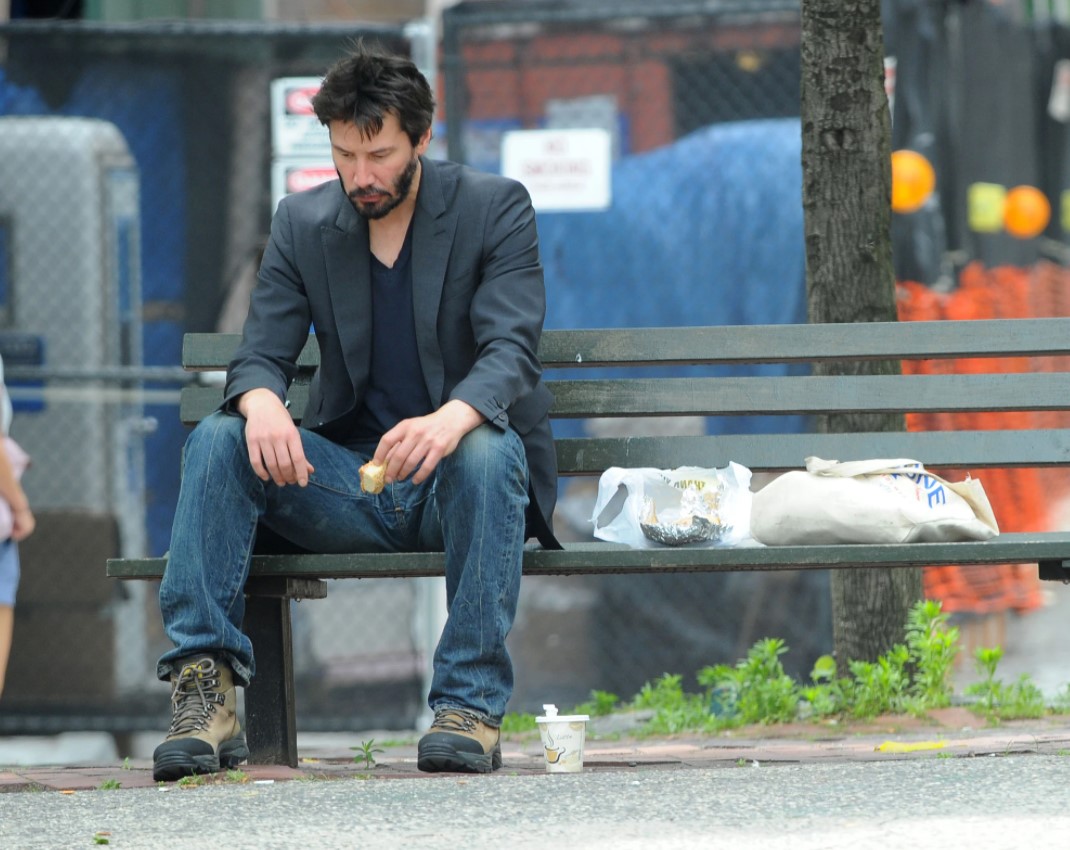 На фото под названием "Грустный Киану" можно увидеть, как актер сидит на лавочке и кушает свой бутерброд. Однако в этот момент он выглядит довольно озадаченным и поникшим в свои мысли. Кадр был сделан еще в 2010 году. Вероятно, загадочный вид Ривза на этом снимке и стал причиной того, что в сети "Грустный Киану" прославился и стал мемом. И сегодня легендарный кадр пользуется большой популярностью среди интернет-пользователей.