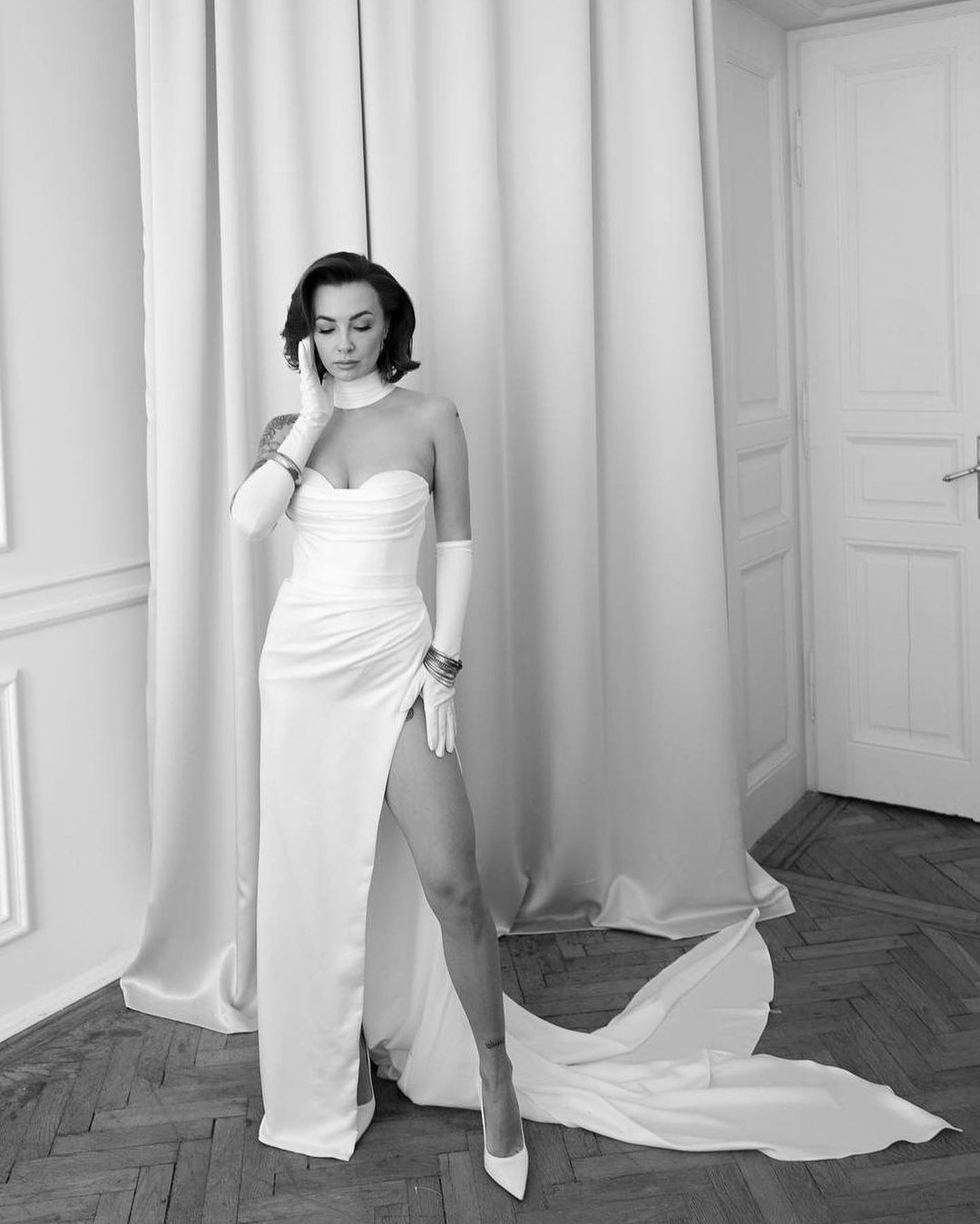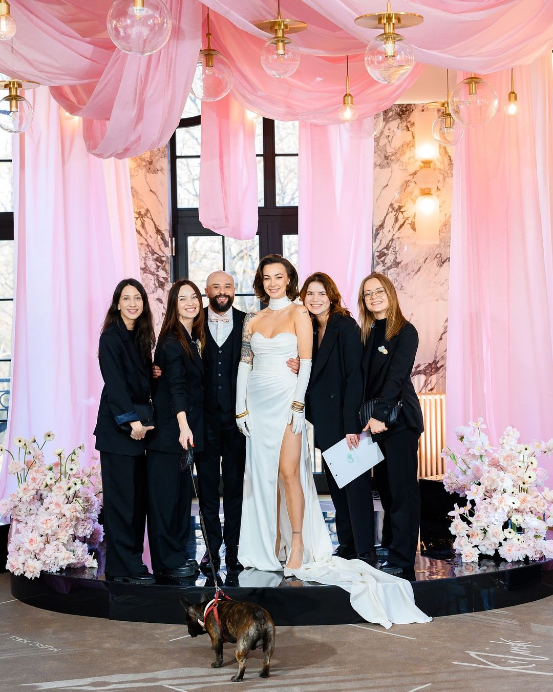 Кадры с красивого праздника на своей странице в Instagram опубликовала Ольга, отметив авторов фото и свадебных нарядов. Мерзликина для важного дня выбрала белоснежное платье с открытым декольте и высоким разрезом на ноге львовского бренда Crystal, а Розовый нарядился в классический черный костюм Andreas Moskin. Свою совместную фамилию молодожены подчеркнули розовыми деталями - галстуком-бабочкой и букетом.