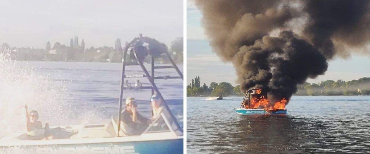 Сообщается, что трое пассажиров катера находились в лодке семьи, пока службы быстрого реагирования тушили их пылающий катер. Во время аварии никто не пострадал.