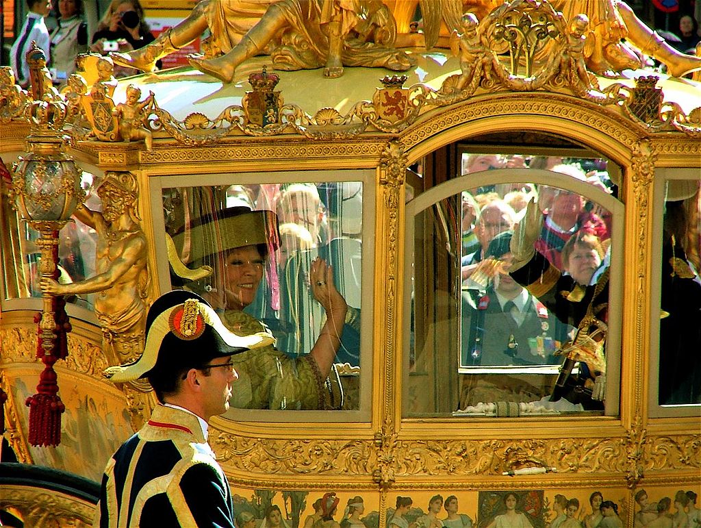 Золотую карету, известную как "De Gouden Koets", в 1898 году подарили королеве Вильгельмине - первой женщине-монарху Нидерландов. С тех пор Королевская семья Нидерландов использовала экипаж в различных официальных и торжественных случаях, включая королевские свадьбы и инаугурации.