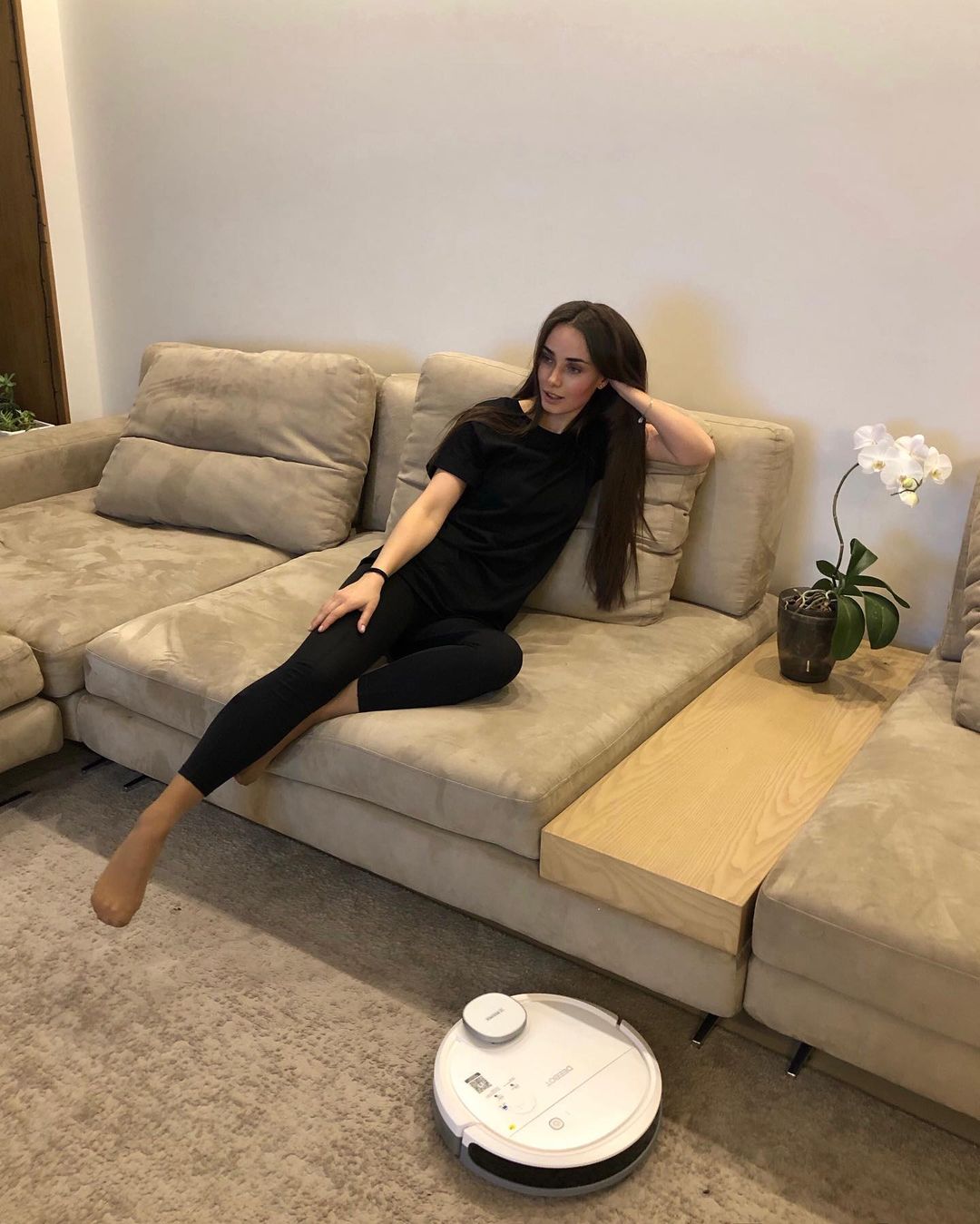 В гостиной можно увидеть огромный угловой диван в песочных тонах. Такого же оттенка Ксения подобрала и ковер.