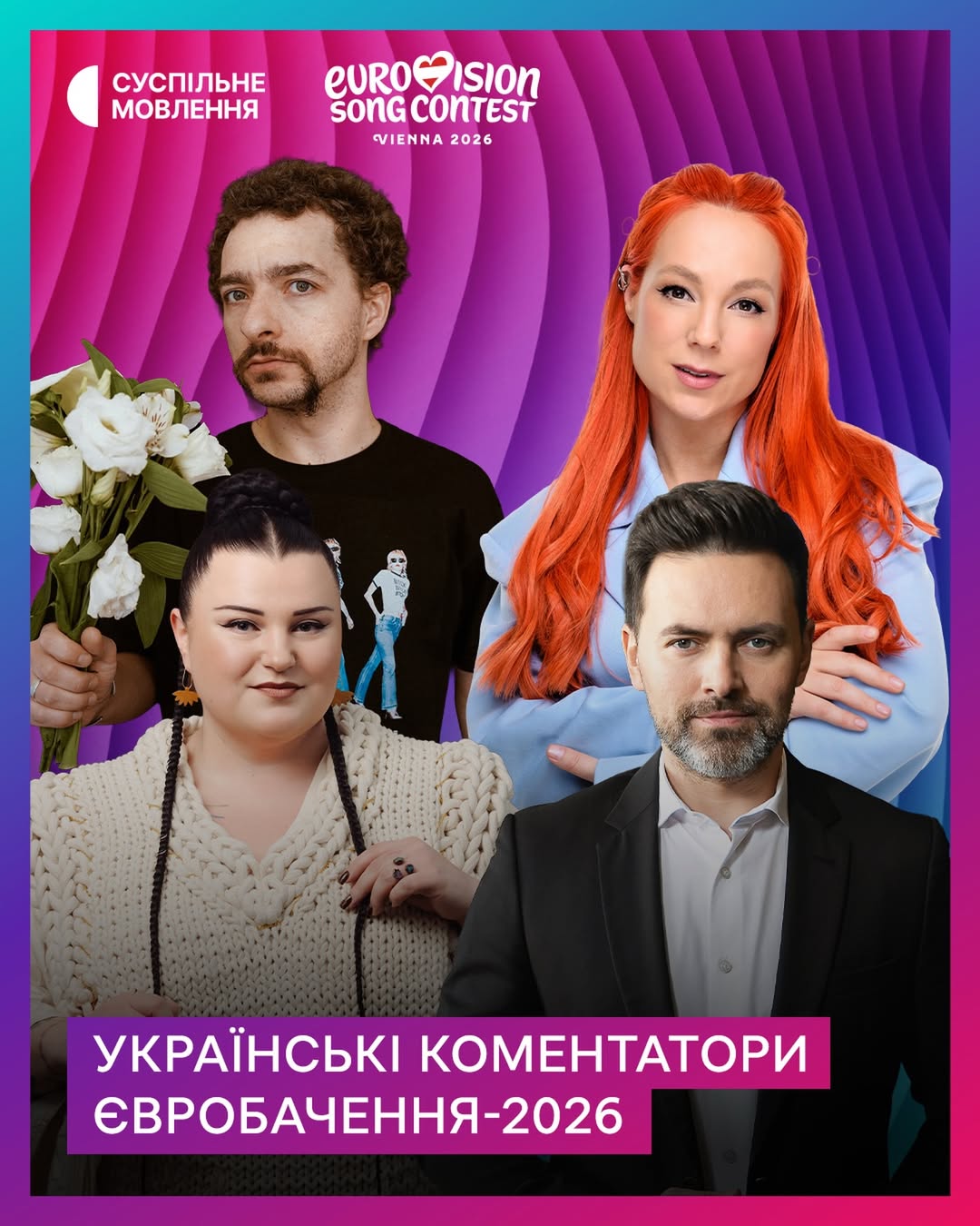 Известно, что Василий Байдак будет комментировать первый полуфинал, который пройдет 12 мая. Светлана Тарабарова присоединится к Тимуру Мирошниченко во втором полуфинале 14 мая, где выступит представительница Украины LELÉKA. А alyona alyona прокомментирует финал конкурса, запланированный на 16 мая.