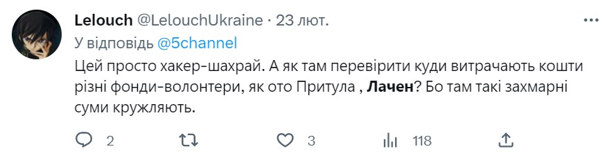 "Это ужасно, я бы убрал вообще разрешение на 20%. Оно больше негатива вызывает. Мне объясняли, что маленькие фонды на это и живут. Большие фонды, такие как Притулы и "Повернись живим", в этом не нуждаются. У них есть постоянные спонсоры, которые покрывают административные расходы. Время покажет, что никто из больших фондов этого не делал - [не брал деньги из сборов], - ответил Лачен. - Брать с такого процент - для меня кринж. Если ты не можешь себя обеспечить - не берись за волонтерство".