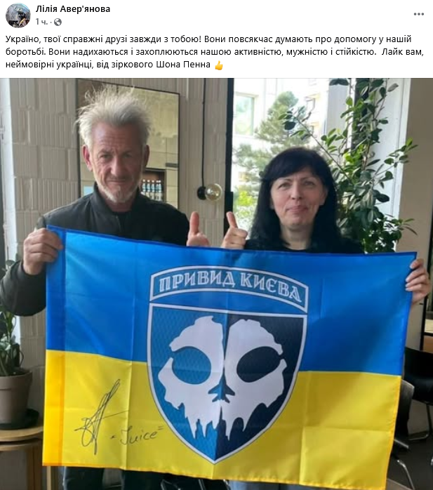 "Украина, твои настоящие друзья всегда с тобой! Они постоянно думают о помощи в нашей борьбе. Они вдохновляются и восхищаются нашей активностью, мужеством и стойкостью. Лайк вам, невероятные украинцы, от звездного Шона Пенна", - говорится в сообщении.
