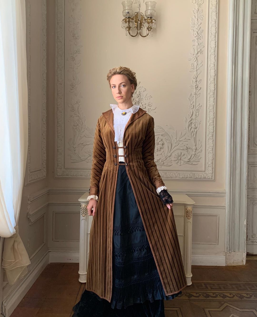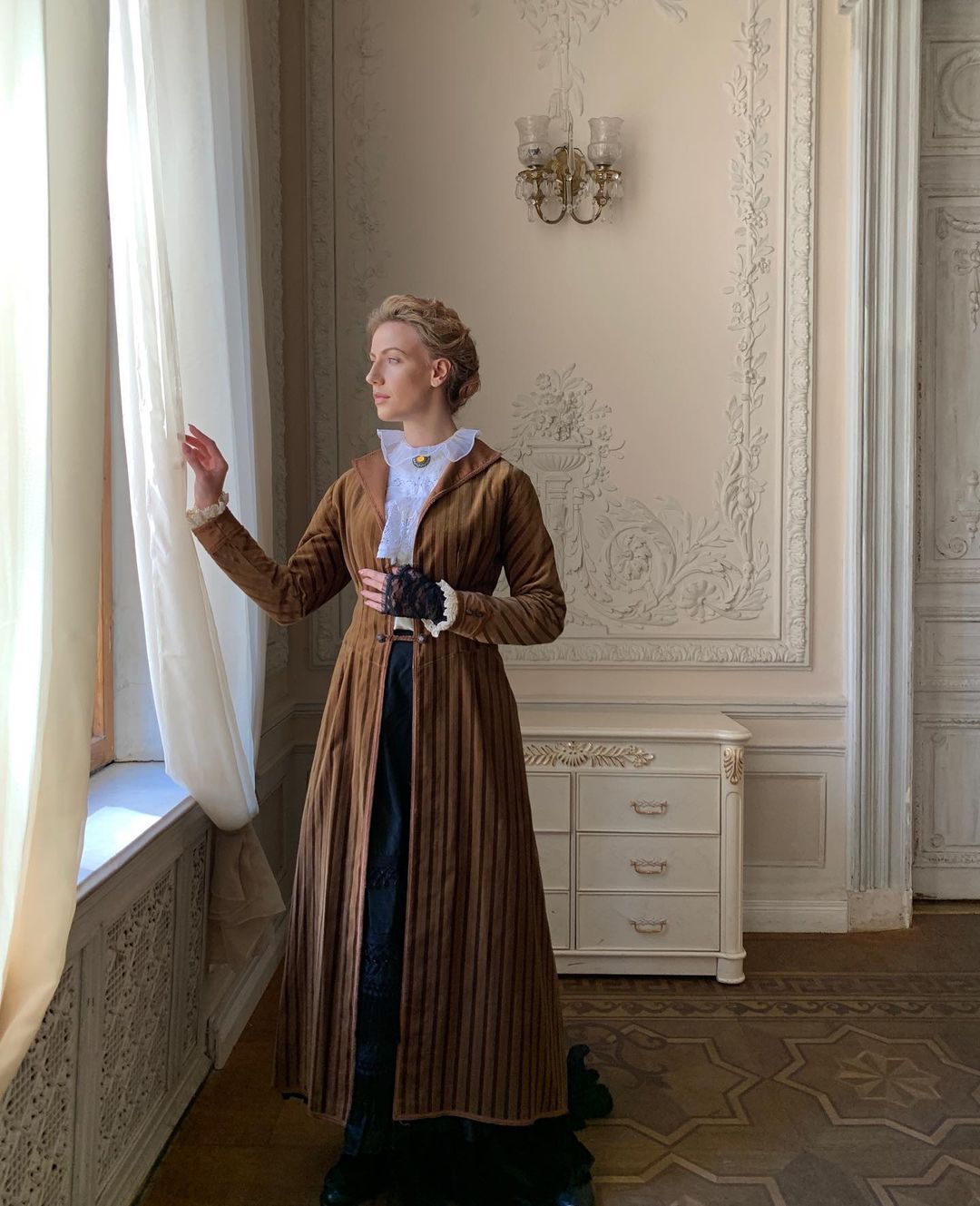 На снимках, опубликованных в Instagram, телезвезда и любимица публики одета в соответствующую той эпохе одежду: белую блузку с ажурным воротником, черную юбку в пол и длинную накидку. Именно такой наряд любила носить украинская писательница.